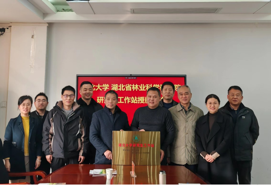 2023年12月28日,威廉希尔williamhill经理彭宇、生态系主任张春云以及杨予静和张劲副教授一行赴湖北省林业科学研究院,与湖北省林业科学研究公司党委书记兼经理赵虎、副经理史玉虎等一同为“威廉希尔与湖北省林业科学研究院合作共建研究生工作站”授牌,授牌仪式成功举行。