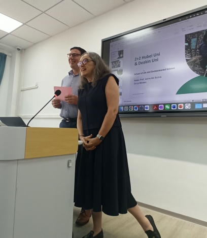 见面会上,黄书记鼓励同学们刻苦努力,筑梦前行,让自己的老员工活熠熠生辉。迪肯大学Janine Mc Burnie和Ben Horan经理介绍了迪肯老员工命和环境科学公司、工程公司的基本情况,Liz Weldon和Yanan Wang副经理向2024级新生介绍了迪肯大学与公司的合作项目,鼓励员工们在学好专业知识的同时,充分利用公司与迪肯大学合作办学平台,开拓视野。