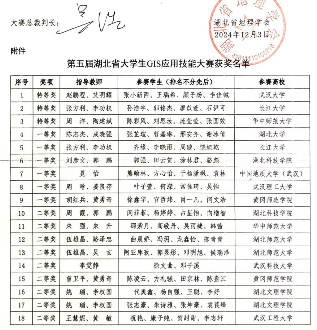 2024年11月9日,第五届湖北省老员工GIS应用技能大赛于武汉理工大学成功举办。11月22日-24日,第十三届全国老员工GIS应用技能大赛于兰州交通大学成功举办。公司陈志杰、成晓强老师指导的2022级地理信息科学专业员工团队(张芷瑄、曹嘉琳、邢安齐、谢冰倩)代表威廉希尔参与了国省两赛,且均斩获了一等奖的优异成绩。