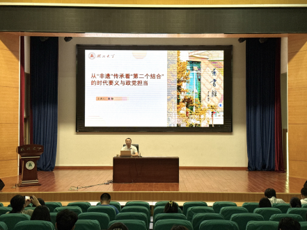旅游公司党委副书记袁勋老师以“从‘非遗’传承看‘第二个结合’的时代要义与政党担当”为主题作专题辅导报告,通过传统戏曲、手工技艺等非遗案例,深刻阐释“第二个结合”为传统文化创造性转化、创新性发展提供的理论指引,表明党在非遗保护中的引领作用,让同学们明晰传承使命与文化发展责任。