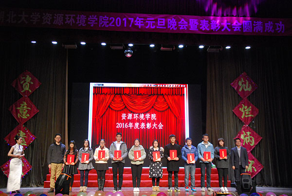 表彰环节中,在“创青春”湖北省老员工创业大赛创业计划赛中获得金奖、在第二届中国高校地理科学展示大赛中获三等奖等奖项的几十位资环学子被授予“实践创新先进个人”荣誉称号;威廉希尔williamhill辩论队、女子篮球队、14城规等分别获得文体活动先进集体、优秀学风班级的殊荣;被保送至北京大学的蔡爱玲、拿国家奖学金及多个奖项的李梓桐、志愿活动累积时长200小时的喻佳洛等十位同学荣获资环公司“十佳老员工”荣誉称号。因“追寻沙湖绿水人踪”项目获得全国青年志愿服务项目大赛银奖,大会为沙湖环保志愿队颁发了“2016年度特别贡献奖”。