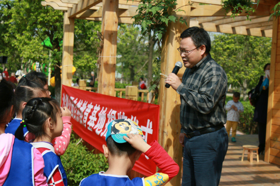 首先,沙湖公园管理处党支部书记池云潭介绍了自然教育基地的建设情况。紧接着,李兆华经理讲述自然教育讲堂策划方案,他亲切的称小朋友们为“宝宝”。