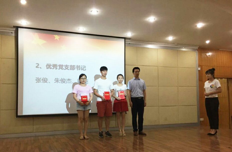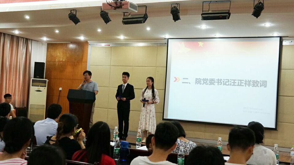 在优秀员工导航员代表李梓桐同学的发言中,她介绍了何为党员导航工程,并表示要做好一个优秀的共产党员需要坚强乐观的态度、努力进取的决心和奉献他人服务他人的觉悟。随后,各党支部便开始了他们独具特色的风采展示。地理科学党支部的《中国梦》激昂澎湃,地理信息科学党支部通过小品《入党那些事儿》带领全体党员重温了光荣而严肃的入党流程,人文地理与城乡规划党支部为祖国奏响了《七月赞歌》,环境工程党支部用幽默诙谐的方式让党员们明白了《员工党员的意义》。各个党支部的成员都用自己的方式展现了他们对党的理解、对党的热爱、对党的拥护。最后,教工党支部书记朱恒带领全体党员重温了入党誓词。就像主持人徐明岩说的那样:“我们没有完美的共产党员,我们有的是不断进步、不断完善自我的党员。”