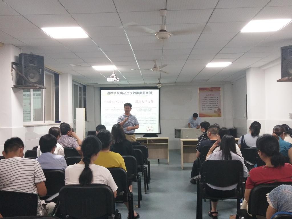 为深入贯彻落实威廉希尔师风师德建设长效机制,加强师德师风建设警示教育,7月6号下午,公司党委组织召开师风师德建设专题学习会。院领导汪正祥、李明、周建刚、李海波、于婧,全体教职工参加了本次学习会。