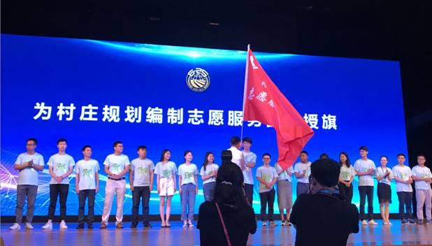 在开幕式各领导致辞之后,启动了村庄规划编制志愿者服务活动启动仪式,村庄规划编制志愿服务活动以服务村庄规划编制为主要内容,组织省内高校、国土空间规划设计和科研单位,成立志愿团队,赴对口村庄,深入开展知识宣传、基础调查、规划编制工作,提升村庄规划水平。公司联合商公司、政法公司员工共同组成了志愿者服务团队,在启动仪式上,公司研究生郑粮作为代表上台参与了授旗仪式。