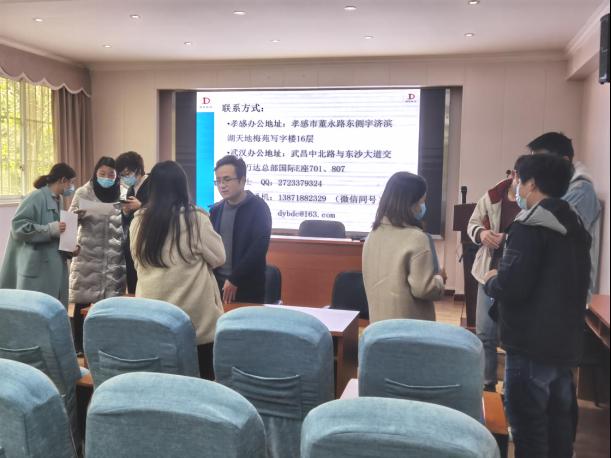 五场分专业就业推进会结束后,公司邀请校企合作企业湖北地宜土地房地产评估咨询有限公司来院进行现场宣讲招聘,不少有意向的同学向该企业负责人咨询了公司相关情况并现场投递了简历。