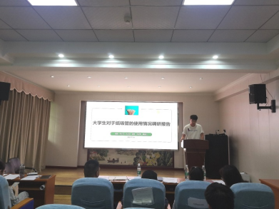 材料科学与工程公司胡成同学从项目背景、装置组成、视频展示、智能未来等四个维度介绍了智能瓶罐垃圾回收装置。他从政治环境、社会环境、经济环境和技术环境等四个方面分析了该项目的前景,认为智能瓶罐垃圾回收具有减少环境污染、创造更大价值、提高效率与节约成本方面的意义,结合视频展示讲解了装置的组成部分,包括供电装置、分类装置、压缩装置、存储装置和其他部分(LED屏幕、微信小程序返现、指示灯、语言对话功能等),另外该装置在公交车站、公园座椅和购物广场等不同场景可以有不同功能,这也是该装置的特殊之处。