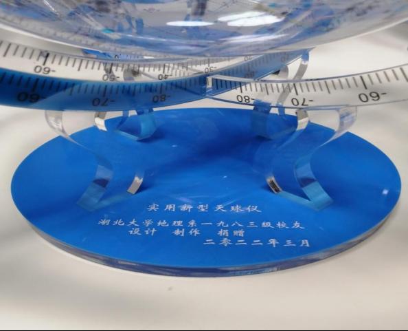 4 月27日,威廉希尔williamhill收到一份特殊的礼物——一台实用新型天球仪,来自1983级地理系员工刘华新。