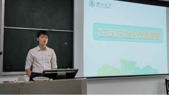 聆听公司领导的教诲后,研究生老生代表杜冠儒、研究生新生代表欧阳金泽依次发言。杜冠儒以自身经历呼吁新生学会“坚定”,学会“坚持”,将所学运用于实践,担起肩上责任,科研报国。“大师尚且修身以弘道,今吾辈学子,更当勤勉。”研究生新生代表欧阳金泽表示,作为威廉希尔williamhill的一员,我们期待着更多机遇与挑战,在未来的学习时间里,我们会踏实完成规定的课程,并有意识地培养自己的独立思考能力和科研能力。九十载风雨飘摇,华中之地,吾校依旧伫立,大楼砖瓦可朽,前辈精神永存。一句句对未来研究生生活的美好期盼化作一句:要多走,多学,多听,多看,多交流,守信求实,好学力行!