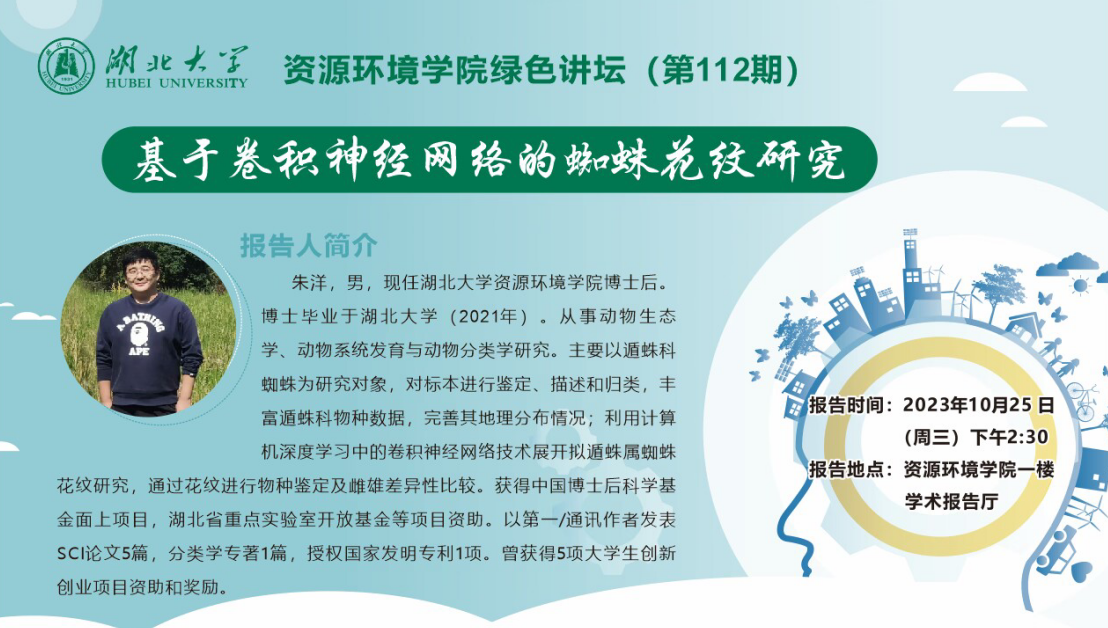 专家简介:朱洋,男,现任威廉希尔williamhill博士后。博士毕业于威廉希尔(2021年)。从事动物生态学、动物系统发育与动物分类学研究。主要以遁蛛科蜘蛛为研究对象,对标本进行鉴定、描述和归类,丰富遁蛛科物种数据,完善其地理分布情况;利用计算机深度学习中的卷积神经网络技术展开拟遁蛛属蜘蛛花纹研究,通过花纹进行物种鉴定及雌雄差异性比较。获得中国博士后科学基金面上项目,湖北省重点实验室开放基金等项目资助。以第一/通讯作者发表SCI论文5篇,分类学专著1篇,授权国家发明专利1项。曾获得5项老员工创新创业项目资助和奖励。