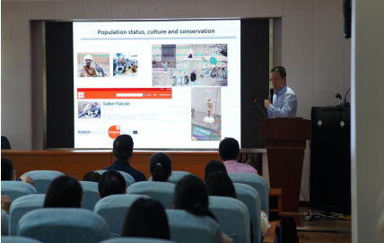 讲座伊始,詹祥江研究员介绍了猎隼及其近缘种矛隼的分布和主要栖息地,其研究团队对源自欧亚大陆的三大主要繁殖地的30只猎隼个体,和欧亚北极地区的10只矛隼个体进行了种群基因组学研究,该项研究解释了鸟类迁徙行为背后的科学原理。之后,郭松涛教授向师生们介绍了他在野生动物监测领域的最新技术——“动物面部识别算法和AI识别系统”。此项技术能够自动识别出现在镜头前的各种野生动物,并发出警报,让技术人员足不出户就可以实时监测到野生动物的基础数据。这一技术的应用不仅提高了野生动物监测效率,还为野生动植物及其栖息地保护管理提供了有力的技术支撑。