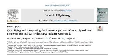 近日,公司于兴修教授团队硕士研究生朱淼淼在国际知名期刊《Journal of Hydrology》(地球科学SCI一区,IF:6.708)发表题为“Quantifying and interpreting the hysteresis patterns of monthly sediment concentration and water discharge in karst watersheds”的科研论文。该论文定量分析了流域水沙滞后关系及气候和植被变化对滞后指数变化的影响。