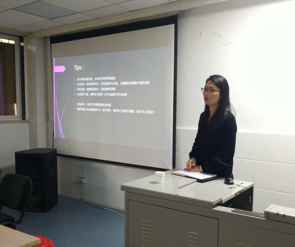 这次报告与其说是一场学术讲座,更像是一次师生间的日常交流。王玲博士回忆自己的研究生生活,用切身的经验为大家提出真诚的建议,帮助刚开始研究生生活的研一员工解决了许多生活上和学习上的困惑。王玲博士的报告详细的从三个方面对大家进行了指导:首先,研究生必须要制定自己的研究计划,对未来两年或者三年的研究生涯有一个初步的规划,然后一步一步的向目标靠近;其次,要学会和导师相处,达到共同进步的效果;最后,研究生一定要学会看文献,尤其是外文文献,这对于今后的任何研究学习都是一个基础性工作。讲座结束后,同学们意犹未尽,提出了许多自身的困惑,王玲博士也一一的耐心解答。