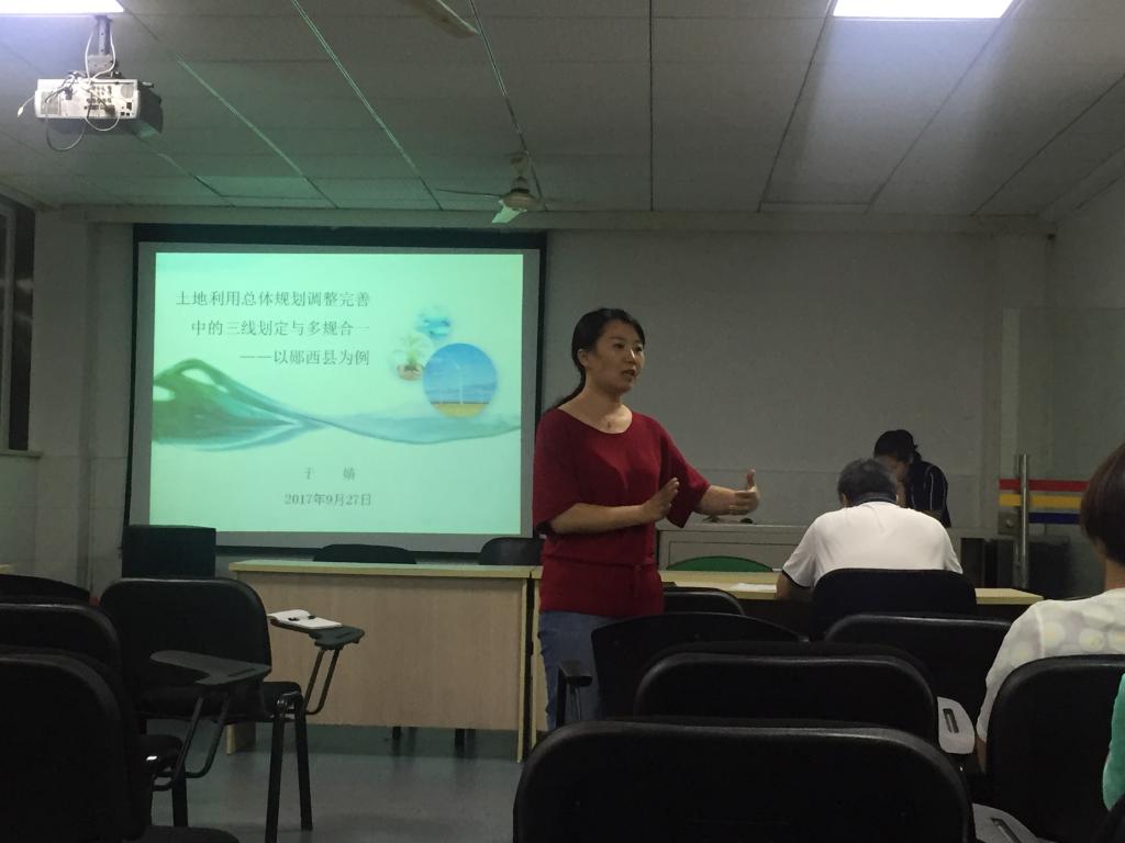 本次报告中,于婧教授提出了在郧西县土地利用总体规划(2006-2020年)调整完善中的一些问题及思考,涉及到目前郧西县生态红线的划定,在执行过程中受到各部门资料的限制等,提出了规划与林业、环保相关规划的衔接。宋慧婷教授就现阶段农作物秸秆资源化利用产生的问题及解决方法提出了自己的探讨,即在后续的工作中,围绕“循环生态农业”开展桔梗资源化利用、养殖业废弃处理种植业土壤改良等相关工作。报告后聆听教师们提出了自己的疑问,就两位教授的报告主题进行了学术探讨。