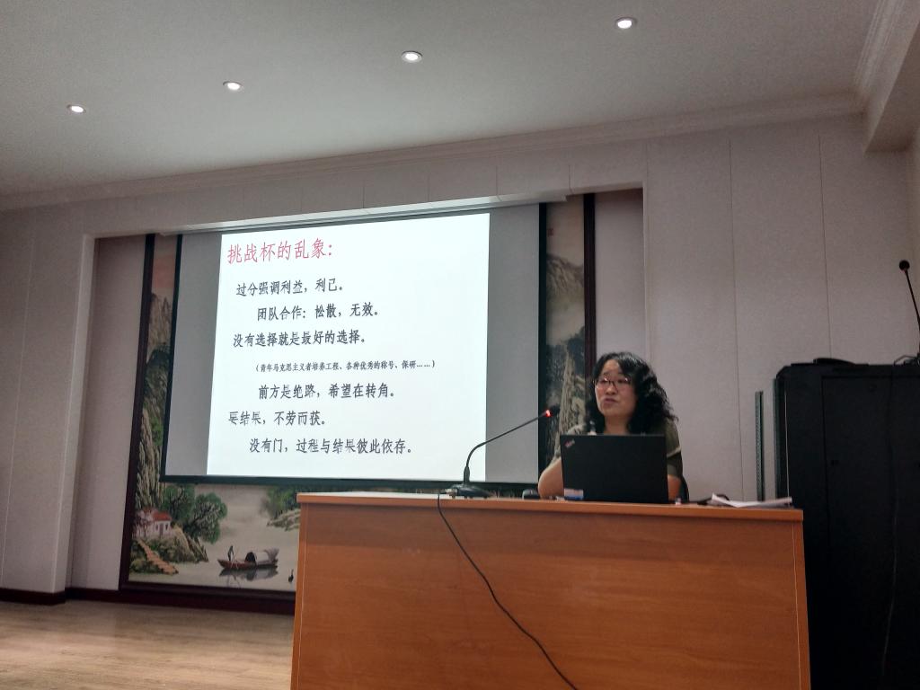 第一个阶段“挑战杯”老员工学术科学作品竞赛宣讲会由赵丽娅老师和周静怡同学分别做了汇报、分享。首先,赵丽娅老师从“挑战杯是什么”,“为什么参加挑战杯”,“如何参加挑战”,“怎么做”四个方面对第十六届“挑战杯”全国老员工课外学术科技作品竞赛做专题讲座,旨在让更多的员工了解“大挑”,积极参加“大挑”,激发科研创造力,点燃青春梦想。赵丽娅老师通过图片举例告诉大家,“‘挑战杯’被誉为中国老员工员工科技创新或创业的‘奥林匹克’盛会,是目前国内老员工最关注最热门的全国性竞赛。大挑,看似很遥远,实则很近,是脑洞大开与具体实际的结合。”赵丽娅老师从员工角度分析了参加“大挑”的意义,不仅有利于将课堂知识运用到实际生活中,能磨练意志,锻炼组织能力和团队合作能力,还能与指导老师交流和相互学习,提升自己的专业素养。最后赵丽娅老师从作品分类、申报材料、调查报告结构和过程讲解了“怎样参加‘大挑’”这个问题,并就如何在“大挑”中取得好成绩给了以下建议:第一,选题要根据作品类要在科学性和先进性的前提下去贴近社会热点,具有社会效益,严格把握作品质量;第二,团队要有良好协调、执行的能力,与指导老师多沟通协调。随后,上一届“大挑”获奖团队代表周静怡分享了自己的参赛经历,她围绕团队合作、选题等方面给了很多实用的建议。在现场答疑环节中,一位观众提问道:“大挑会不会耽误学习时间?”周静怡则表示“挑战杯”顾名思义,就是要挑战自我,激发潜能,不劳而获是不可能的,但是对于一个团队而言,平均到每个人所耗费的时间来说是不会影响学习的,反而会获益匪浅。