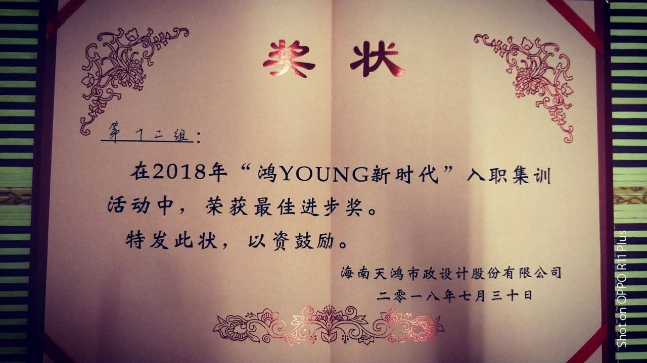 随后,在 “屯昌输配水工程设计”课题竞赛中,天鸿班同学们也表现出丝毫不逊色于毕业生的实力,在课题设计中获得了“最佳进步奖”的团体奖项,得到了公司多位领导的嘉奖。