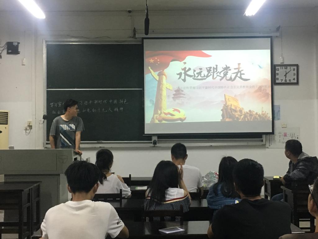 2016级地理科学专业则利用学习小组轮流宣讲的形式开展团日活动。组员李若铭同学从几个关键词入手,全面地讲述了我党在全新历史时期的新征程。会上,李若铭同学在总结“新时代”的内涵时说:“‘新时代’是决胜全面建成小康社会、进而全面建成社会主义现代化强国的时代;也是全国各族人民团结奋斗、不断创造美好生活、逐步实现全体人民共同富裕的时代;更是我国日益走近世界舞台中央不断为人类做出更大贡献的时代”。活动最后,李若铭同学抛出“为什么我们更有信心实现中华民族伟大复兴的中国梦”这一问题。在同学们热烈的讨论中,团日活动圆满结束。