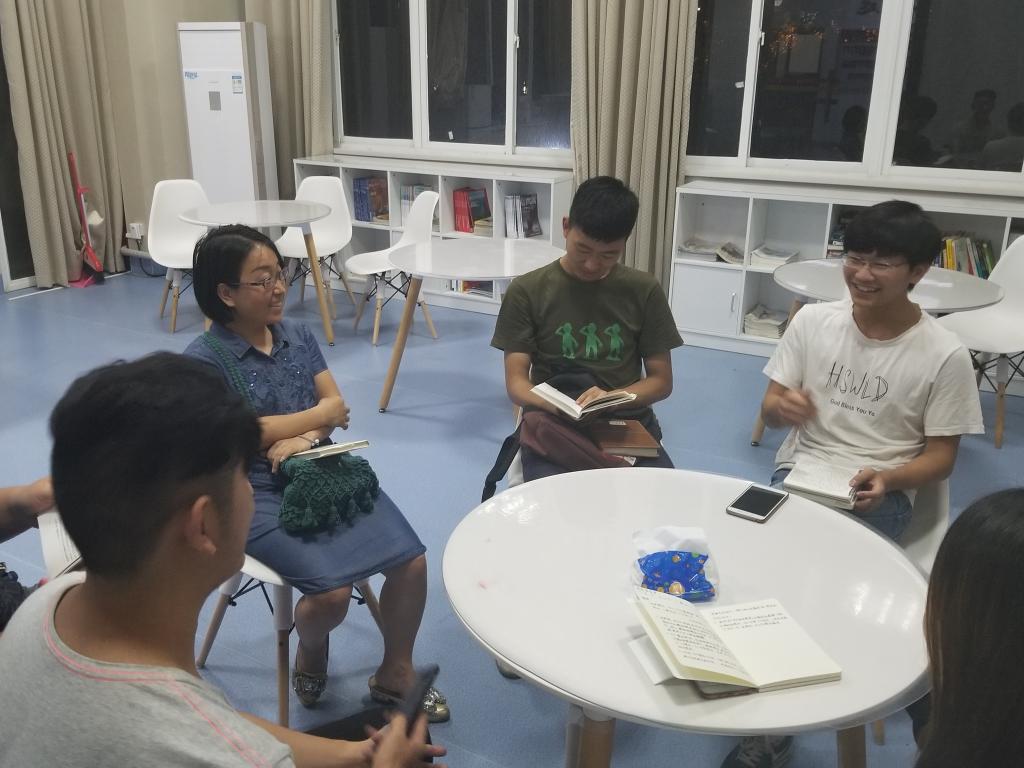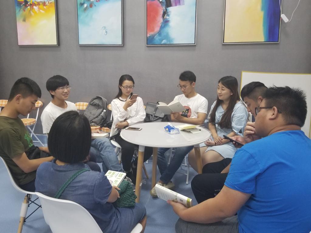 为了让同学们能够在日常生活中养成读书习惯,培养同学们的气质,公司于2018年5月4日星期五晚在院二楼教师之家举办了读书交流会。本次活动由资环院课演协会承办,特别邀请了庞静老师参与和指导。