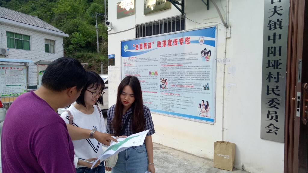 在村委会处,队员们先后对驻村主管“精准扶贫”工程的韩局长、村委会汪书记进行了访谈。从韩局长处了解到中阳垭村的行政面积为65.4km2,是古夫镇面积较大的村子,下辖6个村民小组,土地利用方式方面林地占比很大,而耕地较少,但当地的柑桔园和核桃园发展较好,风光秀丽,自然生态环境优越,中阳小河水土保持科技示范园在建设中,力求打造中阳小河生态清洁小流域,这个工程的项目部已基本建成。人口方面,中阳垭的青壮年劳动力外出务工较多,村上的劳动力多位六七十岁的老人,已呈现出明显的老龄化趋势,劳动力资源匮乏。