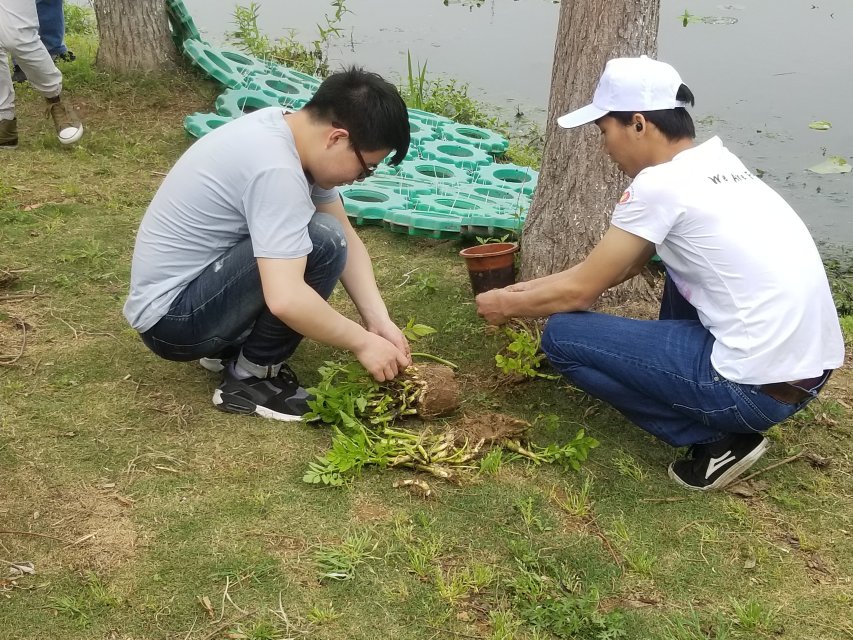 早上8点,志愿者们提着准备已久的夹子、垃圾袋等工具集体前往沙湖。众多志愿者被分成两组,浮岛维修组的志愿者们负责更新生态浮岛,将放置在雁桥旁的浮岛拖上岸边,并更换盆栽。另一组志愿者在沙湖绿道上仔细地捡拾垃圾,并将垃圾分类。令志愿者们倍受鼓舞的是附近许多居民也都积极响应了“世界地球日”的活动,其中有一位父亲带着自己的女儿与志愿者们一起拾捡垃圾,据了解他们已经参加了多次志愿活动。经过志愿者们一上午的努力,沙湖绿道变得更加整洁。最后志愿者们在一片欢声笑语中合影留念,“世界地球日”活动就此结束。