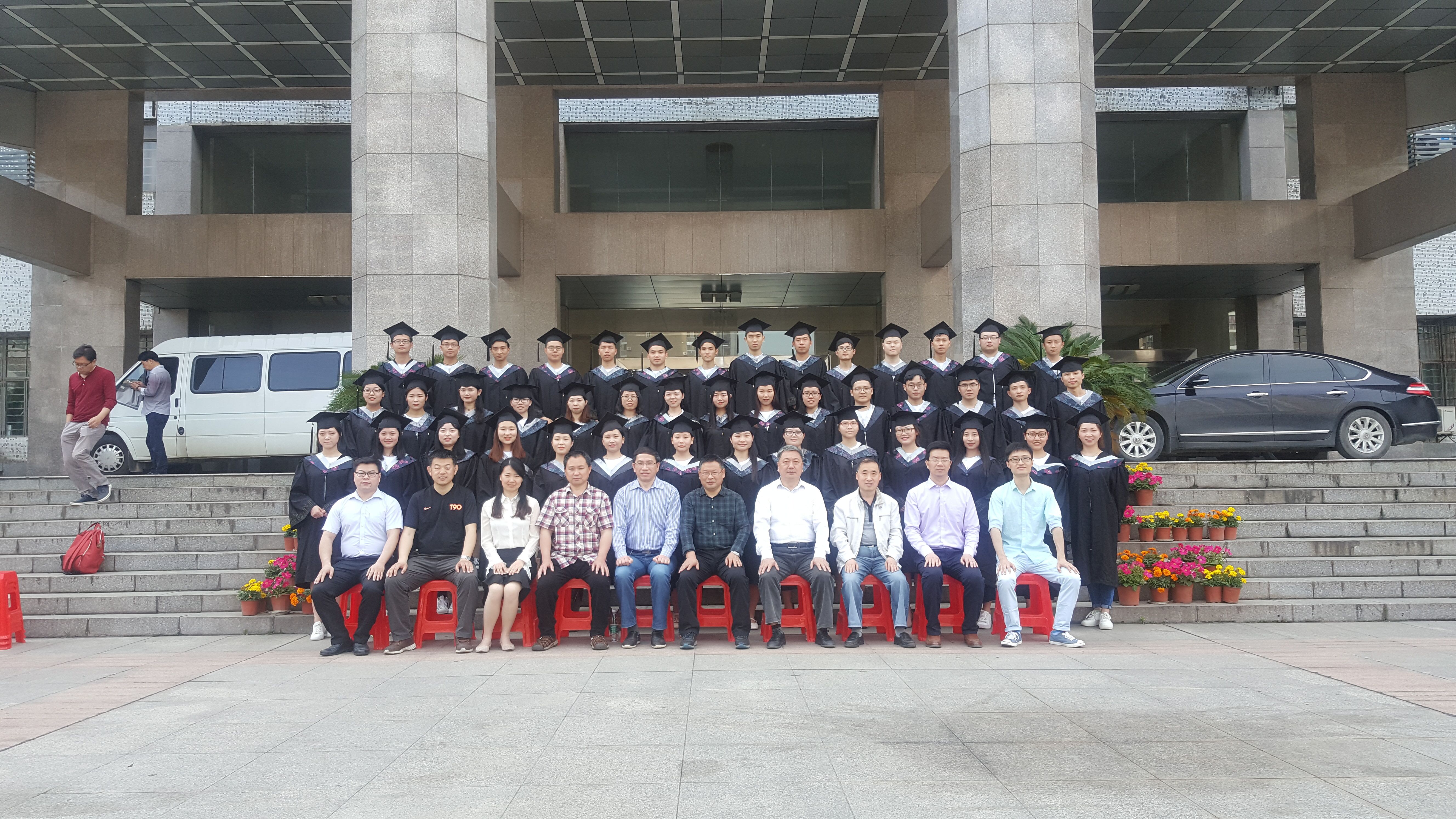 2017年5月10日校领导与公司毕业生拍照留念 来源:威廉希尔williamhill发布时间:2017-05-11点击率: 5月10日上午七点半,公司2013级全体毕业生于行政楼前合影,党委书记尚钢、董事长赵凌云、副董事长杨鲜兰与公司毕业生拍照留念。