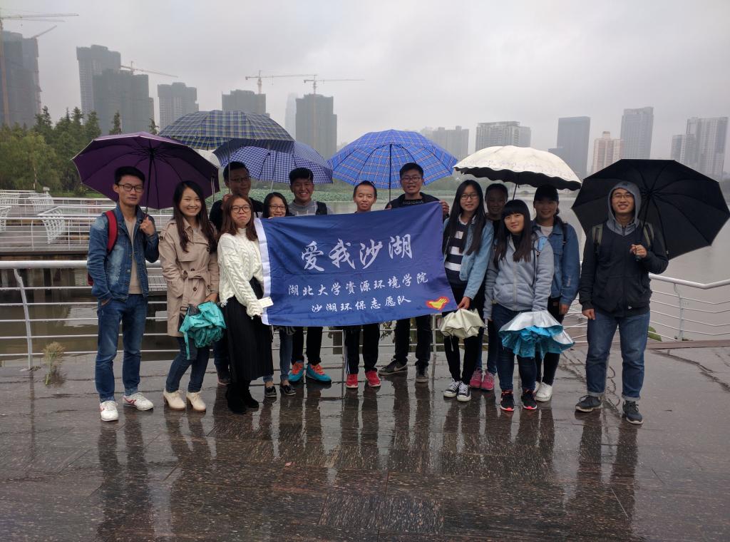 10月29日下午1点,湖北大学威廉希尔williamhill志愿者协会冒着风雨来到沙湖,观察各个排污口的排水情况。