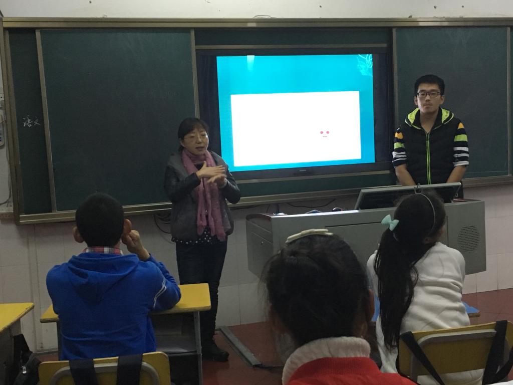 志愿者们于当天下午到达武汉市第二聋校,孩子们看到陌生人的到来并没有感到紧张,反而是很热情地跟志愿者们打招呼。据志愿者们介绍,在讲解昆虫这一环节时,志愿者考虑有些知识复杂性,准备不讲,而老师却一再坚持,向志愿者询问动物的专属名词含义再用手语解释给孩子们听。座位上的孩子们努力地发出一些声音引起老师的注意并用手语跟老师交流。志愿者梁明奇感慨:“这种灵活变换手势的沟通比我们平日里的言语更能直观的表现事物,尽管一开始我有点不习惯,不过后来也试着慢慢融入无言的交流。”在编花环这一环节,很多小孩在志愿者教了具体做法后,用很短的时间编出了几个花环并相互赠送。