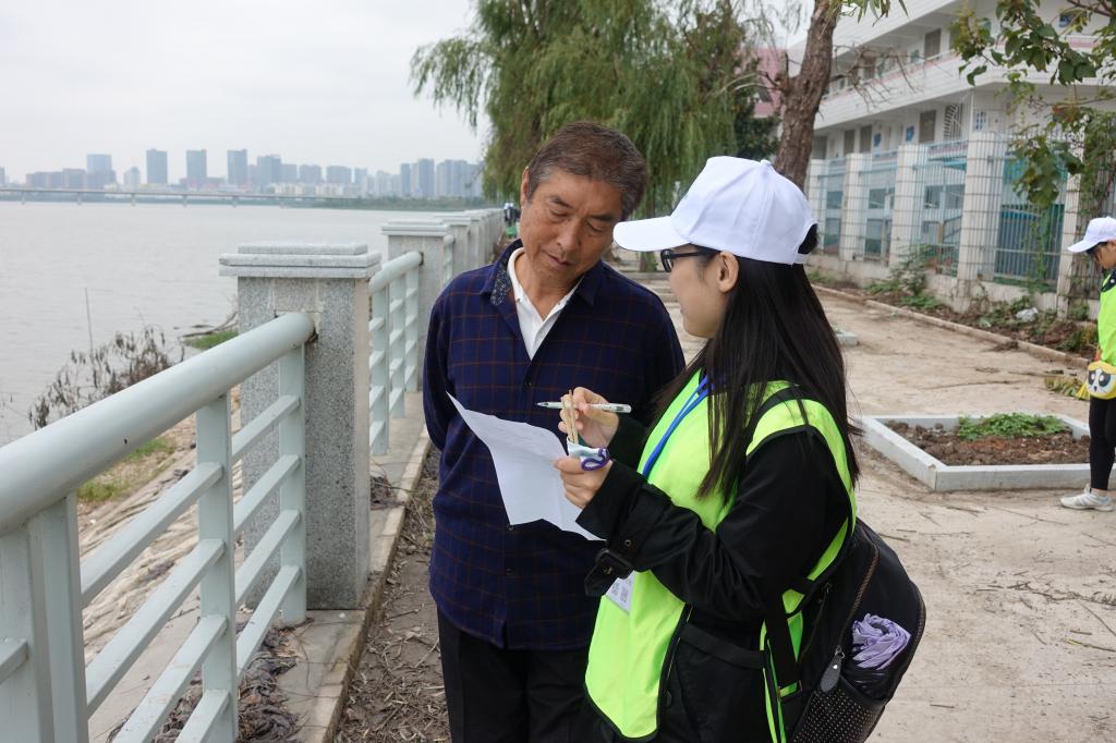各队伍领到清理物资之后沿着外沙湖展开了历时一个小时的垃圾清理活动。清理途中志愿者们听韩忠老师讲解了一些关于沙湖排污口的历史,正在钓鱼的附近居民参与进来并且向志愿者们展示了仍在排污却少有人知的管道。