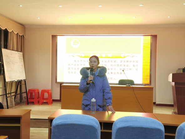 公司团委书记邓琪老师为本次活动致辞,对“青马工程”暨团学骨干培训班的顺利开班表示衷心祝贺,对培训班学员表示热烈的欢迎。邓琪老师带领团学骨干重温入团誓词,并宣布本次培训班的课程安排及纪律要求。