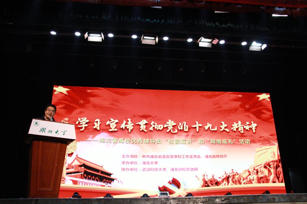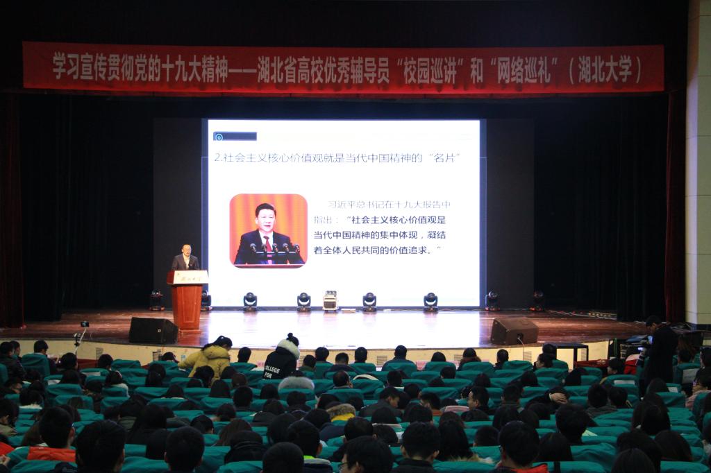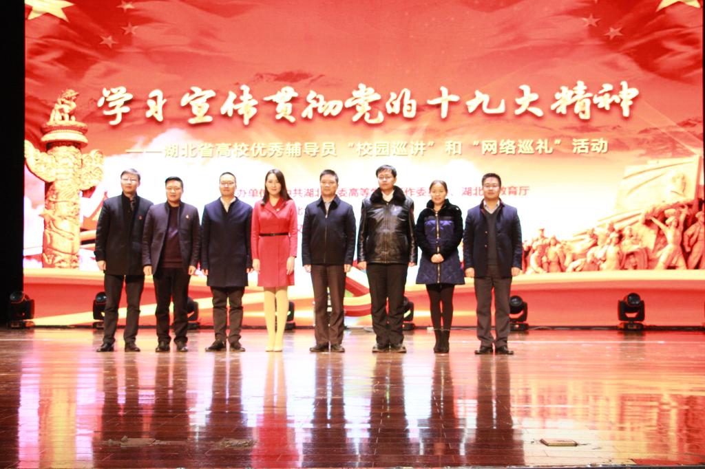 2017年12月13日下午,由湖北省教育厅主办的学习宣传贯彻党的十九大精神——湖北省高校优秀辅导员“校园巡讲”和“网络巡讲”活动在威廉希尔小礼堂举行。