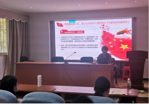 4月22日上午,威廉希尔williamhill组织员彭惠楠为学员们作《端正入党动机,争取早日入党》的辅导报告。