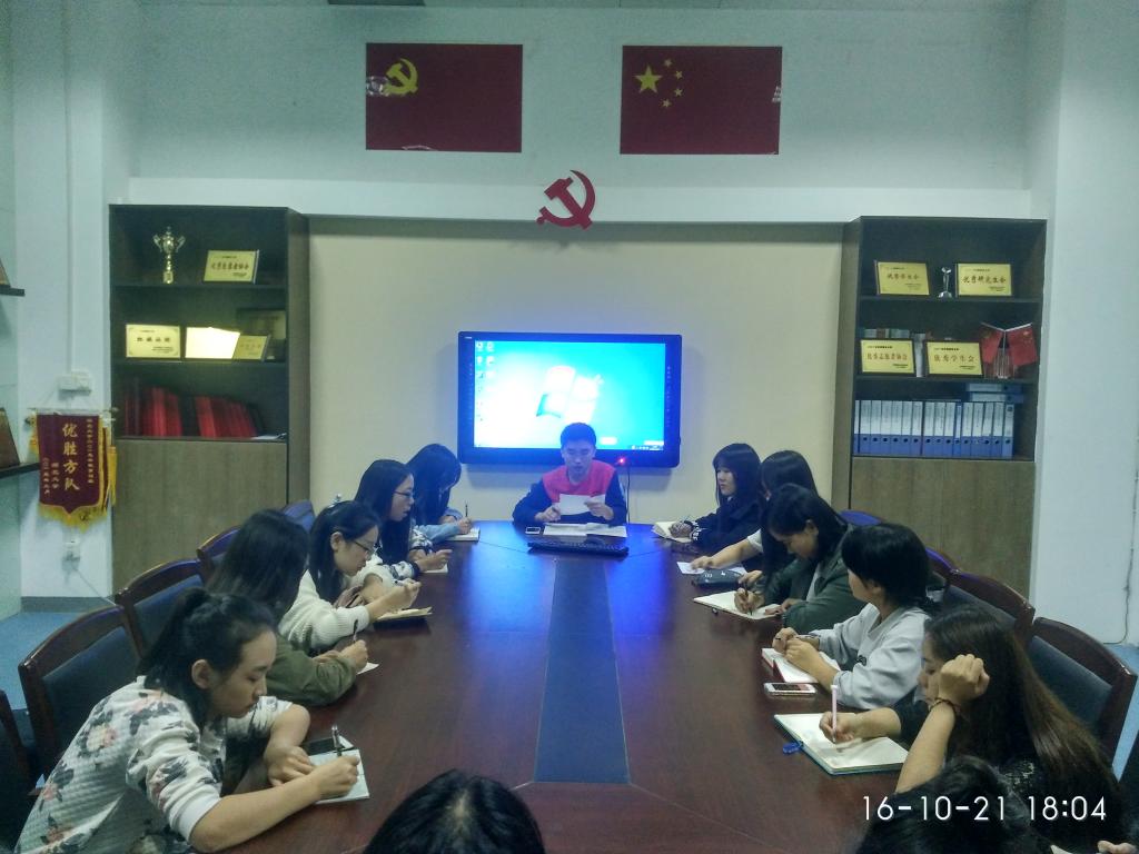 10月21号下午六点,以“发展预备党员、培养优秀入党积极分子”为主题的城规党支部会议在资环公司党员导航工作室召开。会议由城规党支部书记涂思宇主持。城规党员、预备党员、入党积极分子以及城规各年级团支部成员参加会议。
