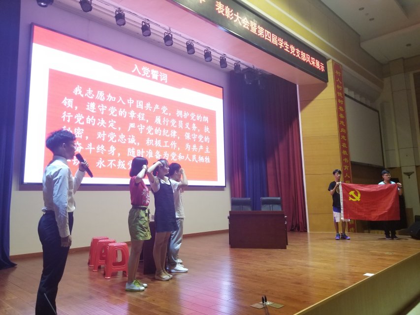 第四届员工党支部风采展示活动在阵阵掌声中拉开了帷幕,各个员工党支部纷纷用自己的形式表达了对党的热爱与崇敬。其中人文地理与城乡规划员工党支部通过重演经典红色话剧《红岩》,向同学们展现了共产党人对于信仰的忠贞和坚定;环境工程员工第一党支部的诗朗诵——《可爱的中国》,表达对于祖国母亲的满腔热忱。在风采展示的最后,地理信息科学员工党支部的康昆带领全体与会人员共同回顾了入党誓词。至此,威廉希尔williamhill庆祝建党97周年表彰大会暨第四届员工党支部风采展示大会圆满结束。